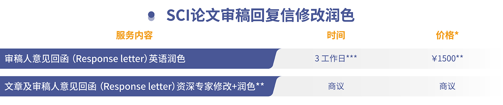 *适用于Response letter中英语单词总数少于1500;如果超出1500单词,费用标准按LetPub SCI论文英语润色服务计算 。