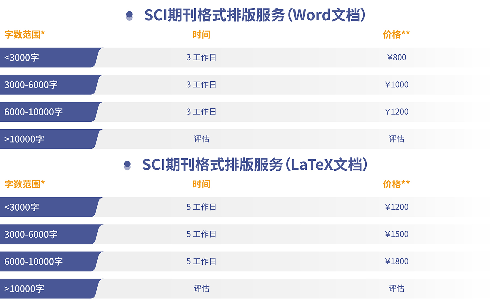 *此项服务不包含字数缩减、内容的补充、语法及拼写检查、图片及表格制作、完整的cover letter撰写等服务,如需相关语言编辑及图表服务可选择LetPub相关服务
