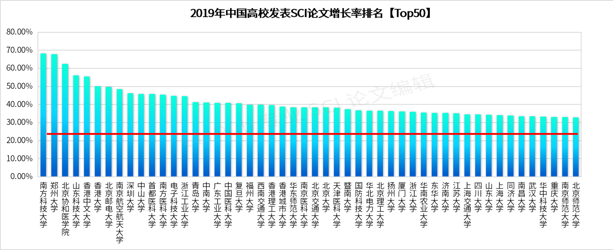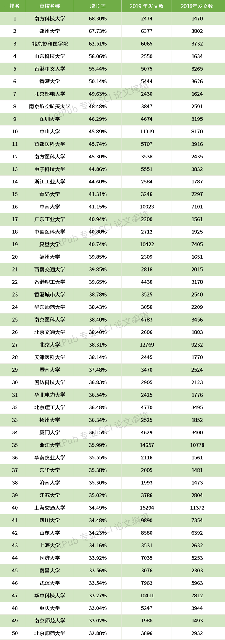 *增长率排名仅针对2019年发文量[Top100]的高校进行统计