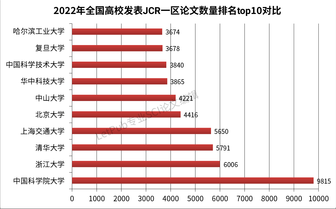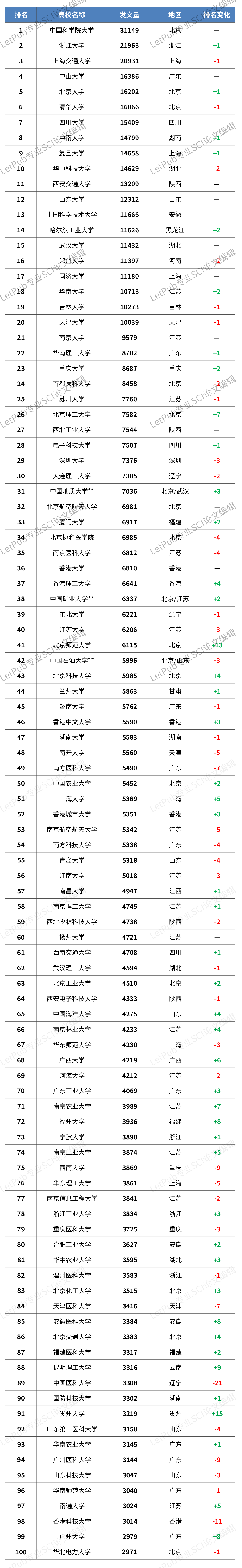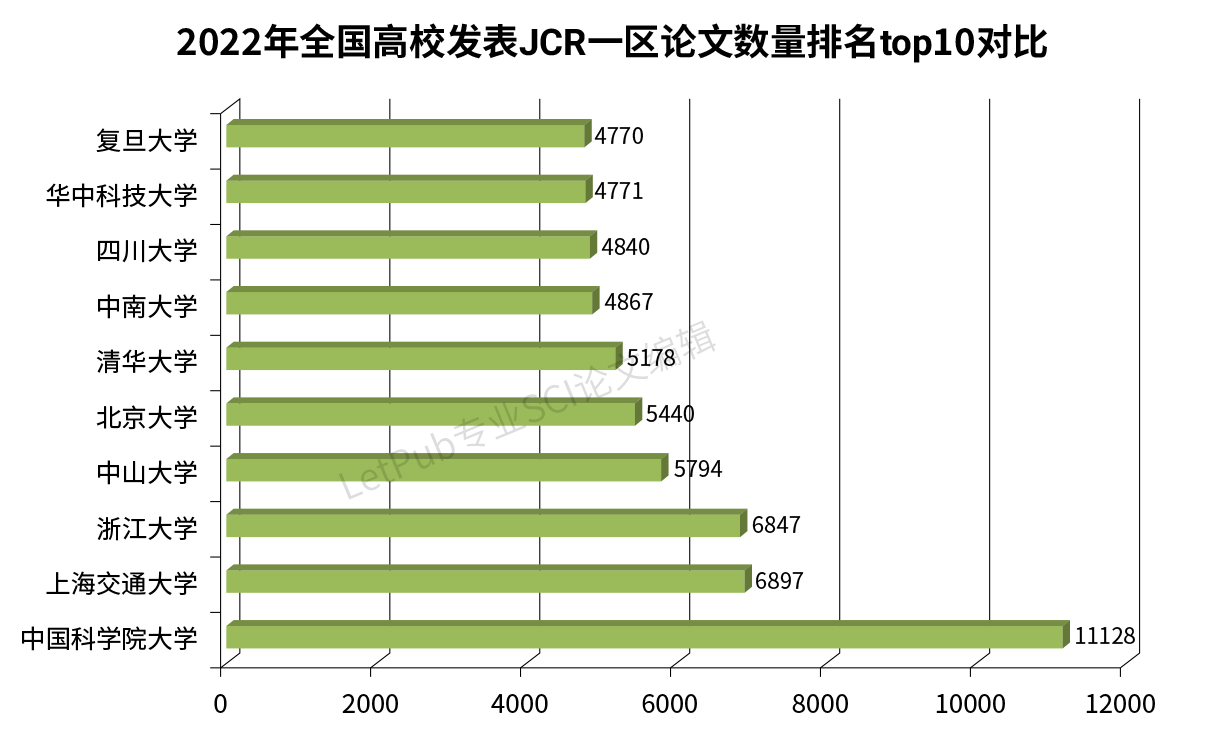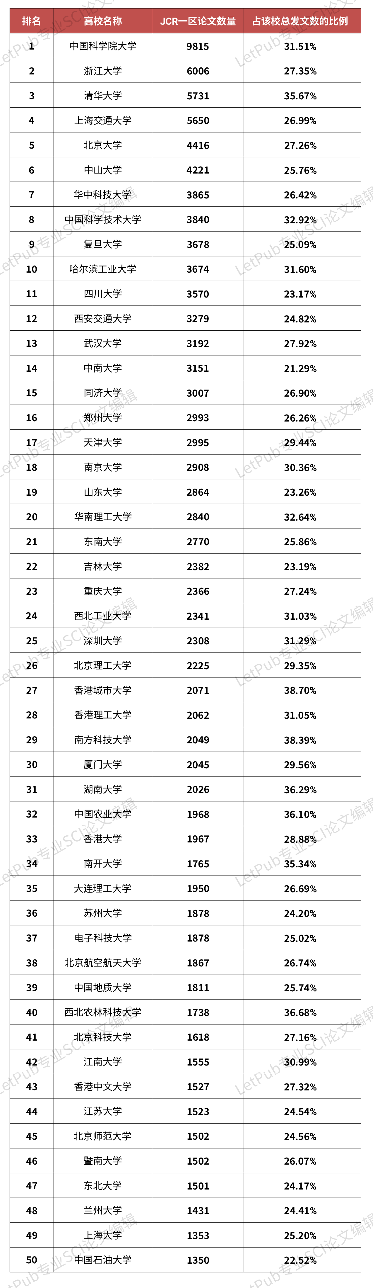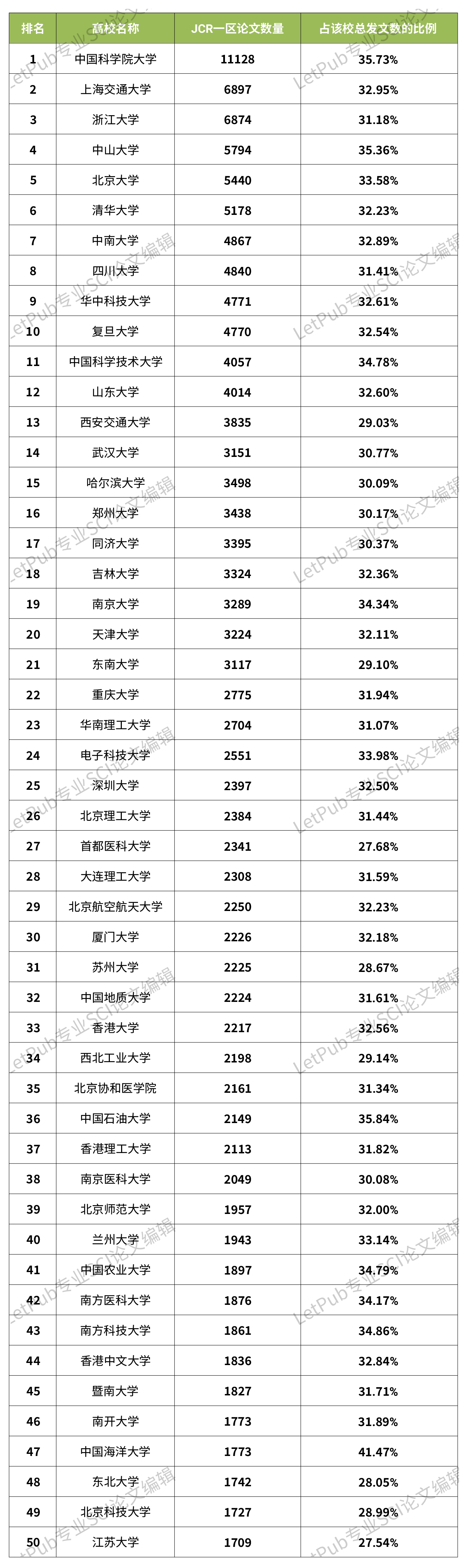 2022年中国高校发表中科院JCR一区期刊论文数量排名【Top50】