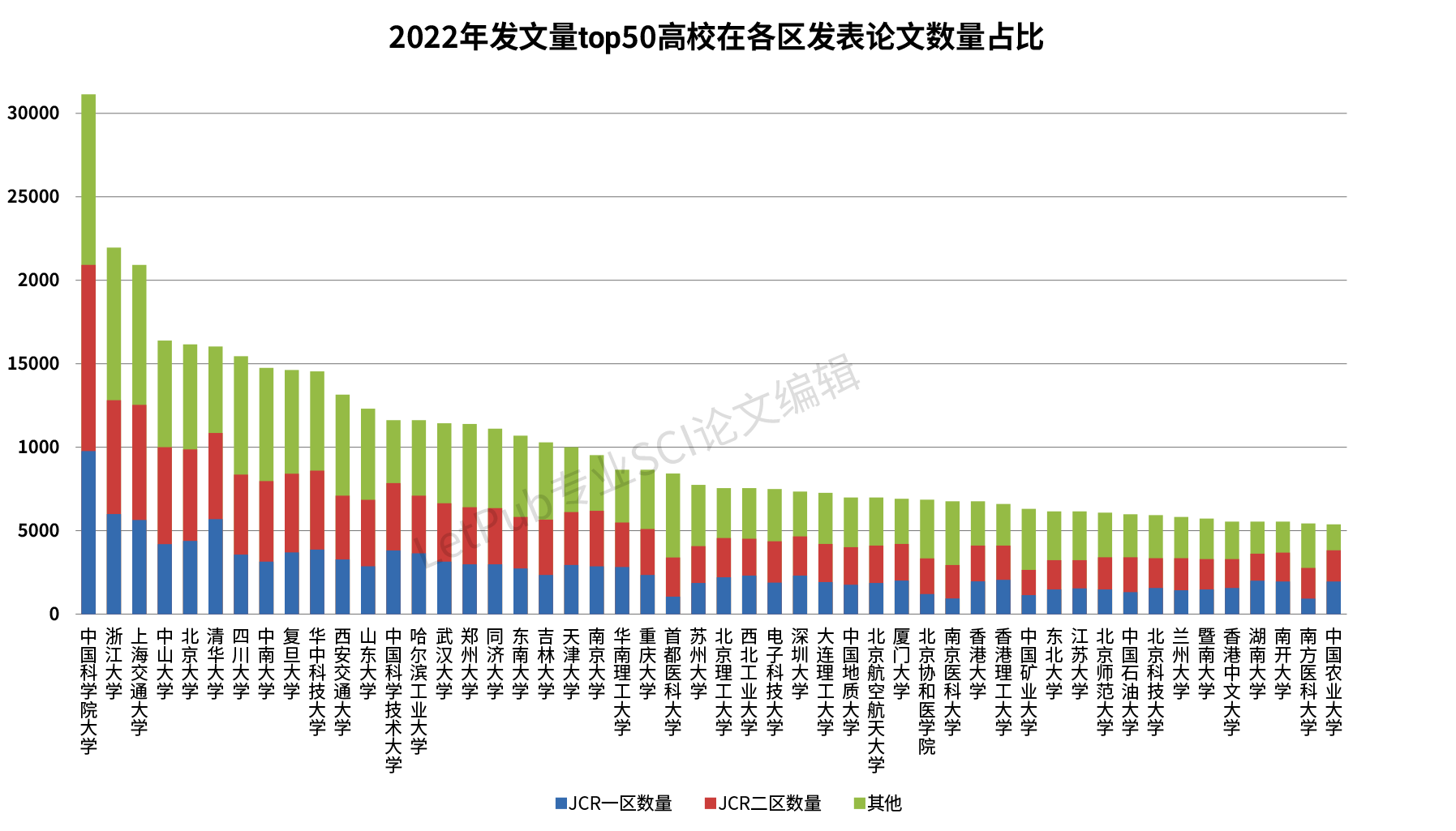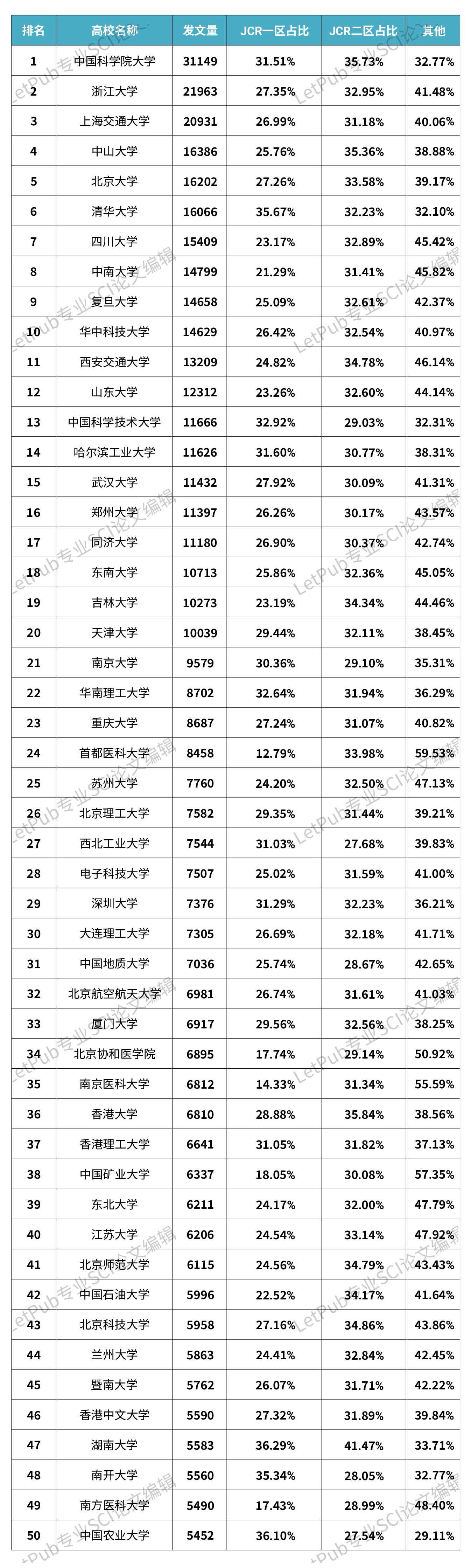 2022年中国高校发表中科院JCR二区期刊论文数量排名【Top50】