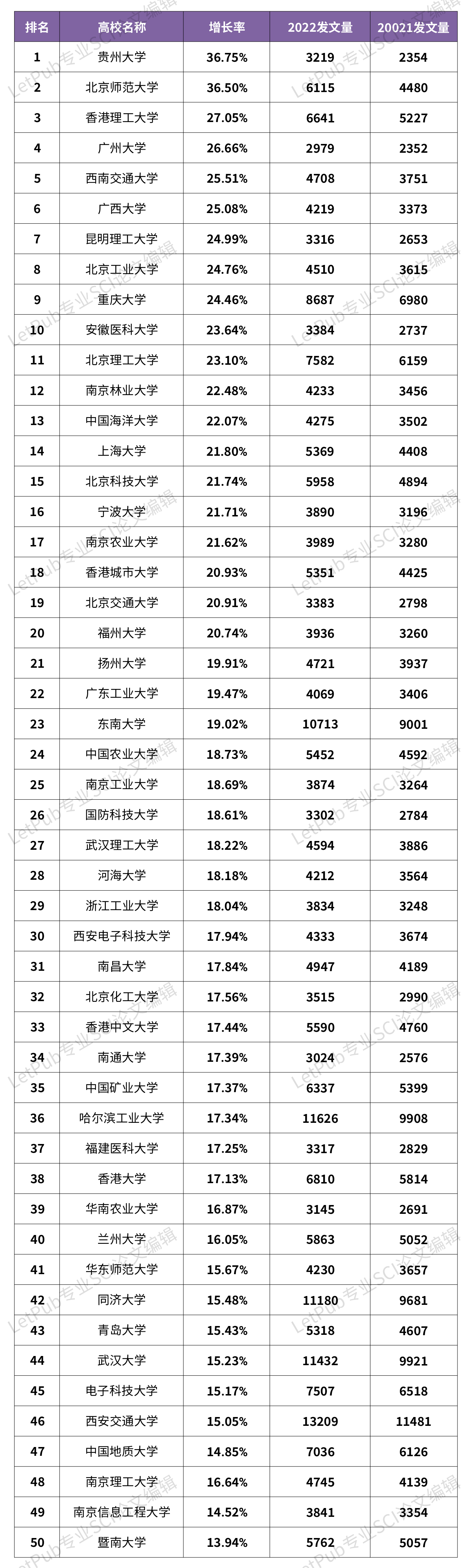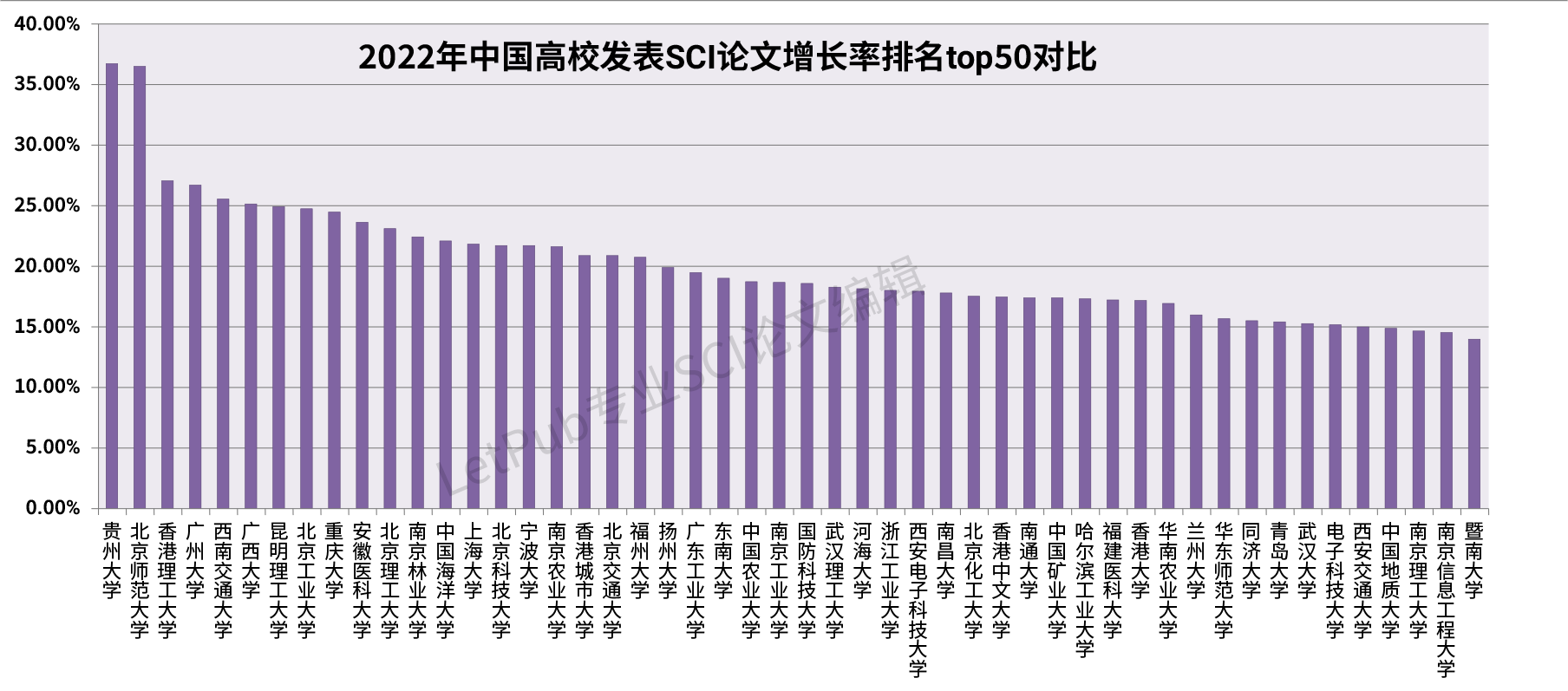 2022年中国高校发表SCI论文增长率排名【Top50】